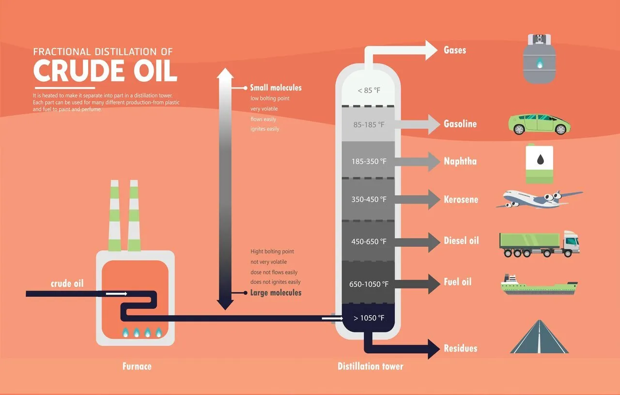 از سوی دیگر نفت خام ایران به خاطر دارا بودن بخشهای سبک و میانی بیشتر، در پالایشگاههای با پیچیدگی متوسط (شاخص نلسون ۷ تا ۹) بهخوبی تصفیه میشود. این نفت بازدهی بالایی در تولید بنزین و گازوئیل مستقیم دارد؛ اما باقی مانده سنگین نفت ونزوئلا که قابل تبخیر در برج تقطیر اتمسفریک نیست، خیلی بالاست.