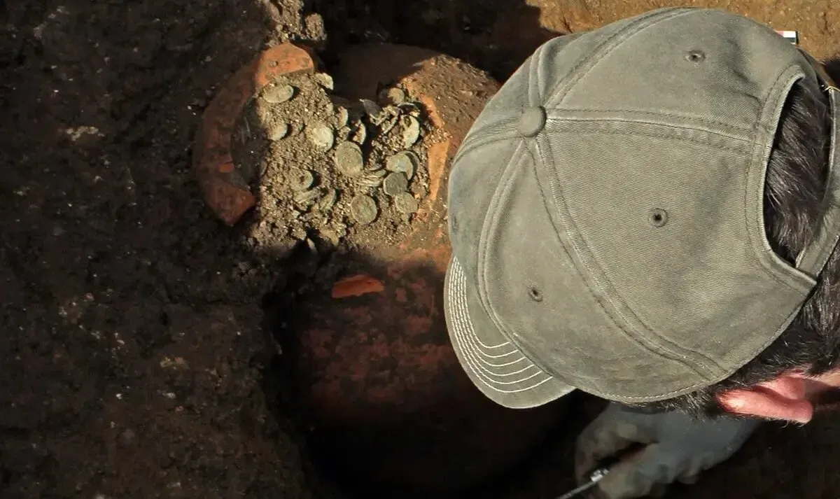 باستانشناسان موسسه باستانشناسی پیشگیرانه فرانسه، قبل از شروع عملیات توسعۀ یک خانۀ مسکونی در شهر تاریخی سنون، به بررسی در محل پرداختند و به یک کشف شگفتانگیز دست پیدا کردند: دو ظرف سفالی حاوی حدود ۴۰ هزار سکۀ روم باستان.