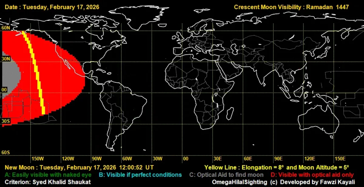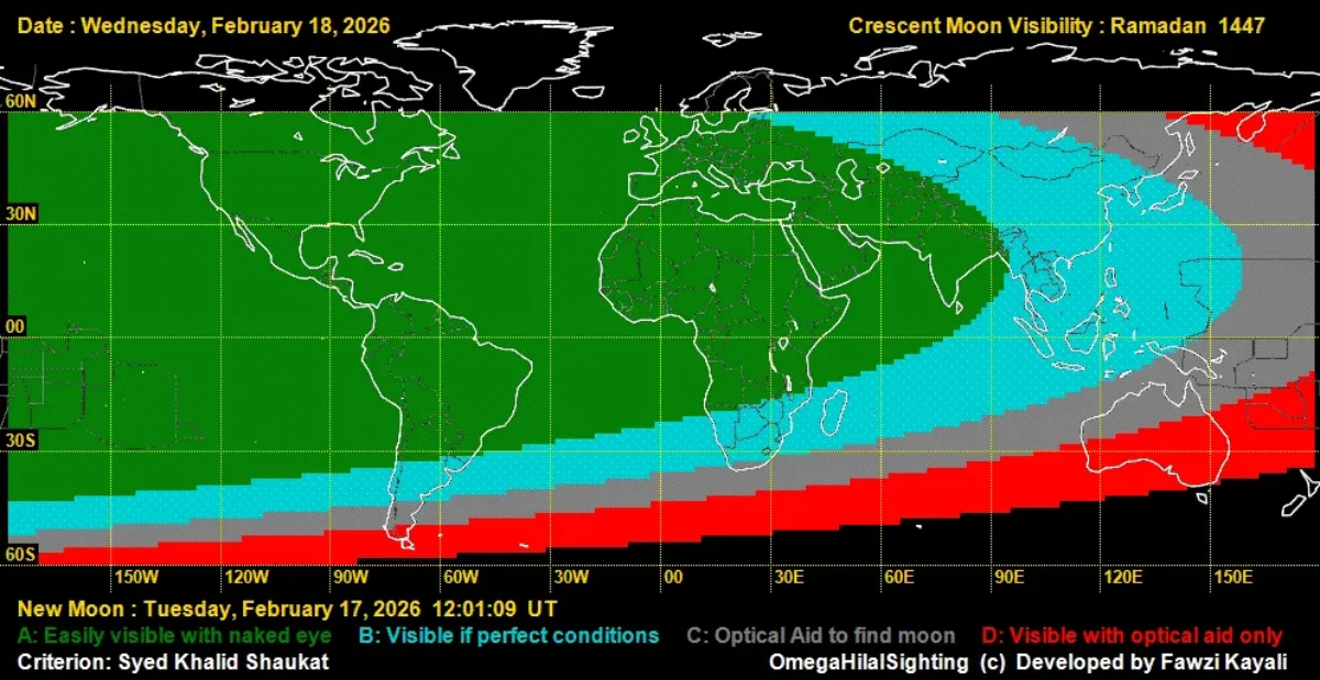بر اساس گزارش منتشرشده از سوی منبع مون‌سایتینگ (Moon Sighting)، در روز سه شنبه ۲۹ بهمن ۱۴۰۴ (۱۷ فوریه ۲۰۲۶)، هلال ماه در هیچ نقطه‌ای از جهان قابل رؤیت نخواهد بود. طبق این گزارش، در روز چهارشنبه ۳۰ بهمن ۱۴۰۴ (۱۸ فوریه ۲۰۲۶)، هلال ماه به‌راحتی در تمام مناطق واقع در غرب هند از جمله …