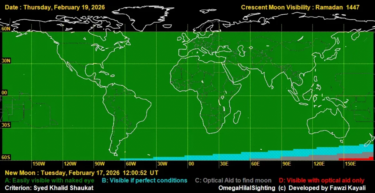همچنین بنا بر اعلام مون‌سایتینگ، در روز پنج شنبه ۱ اسفند ۱۴۰۴ (۱۹ فوریه ۲۰۲۶)، هلال ماه در تمام نقاط جهان به‌راحتی قابل رؤیت خواهد بود. این ارزیابی بر اساس منحنی‌های جهانی رؤیت‌پذیری ماه انجام شده است.