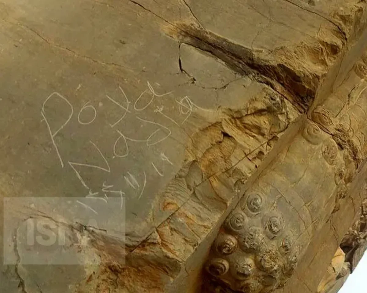 او ادامه داد: در چند روز گذشته فرد یا افرادی ناشناس، که باید آنها را جزو «وندالها» (تخریبگران یا خرابکاران اموال و آثار تاریخی) به شمار آورد، در پیِ غفلت نیروهای نگهبانی با شئای نوک تیز یا چیزی همانند کلید، اقدام به یادگارینویسی روی بدنه سنگ نگاره ورودی دروازه ملل یا فرهنگها کرده و به یادگار پارسیان آسیب رسانده و چهرۀ این یادگار هخامنشیان را خدشهدار کرده است.